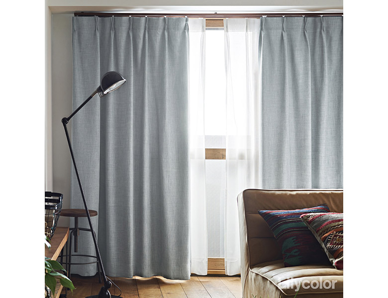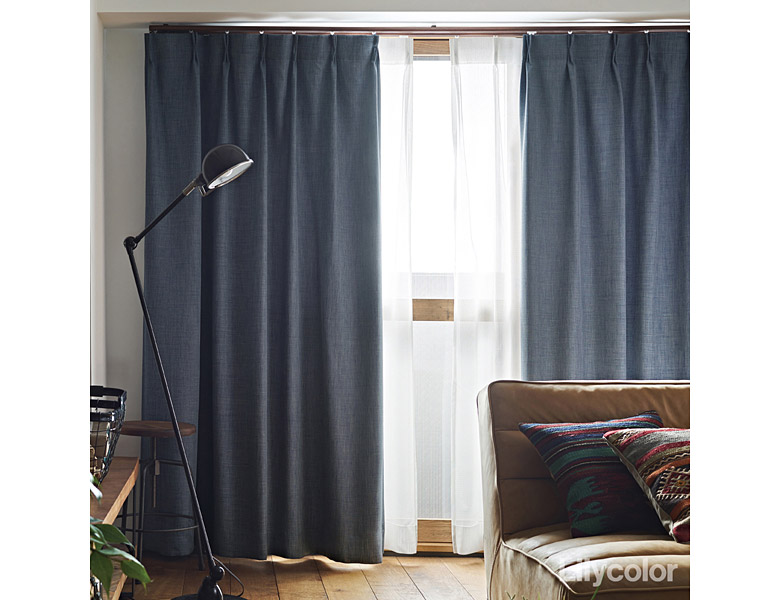 デニム調のドレープは、軽量でお手入れが簡単。かすれた表情が空間に抜け感を演出します。
