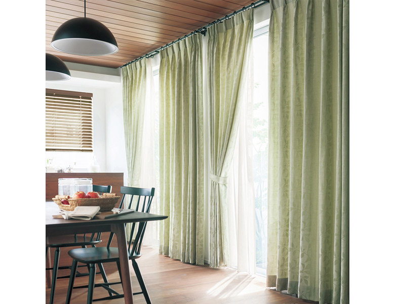 美しいシルエットで表現された定番のリーフ柄カーテンで心地よい空間を演出。