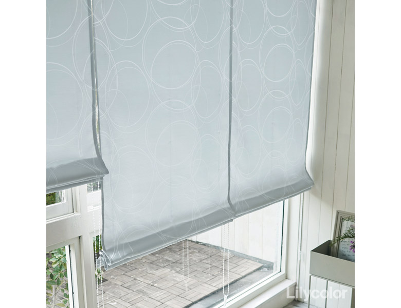 落ち着いた色味のシルバー、爽やかなグルーのサークル柄。ラメ糸の光沢がアクセントです。