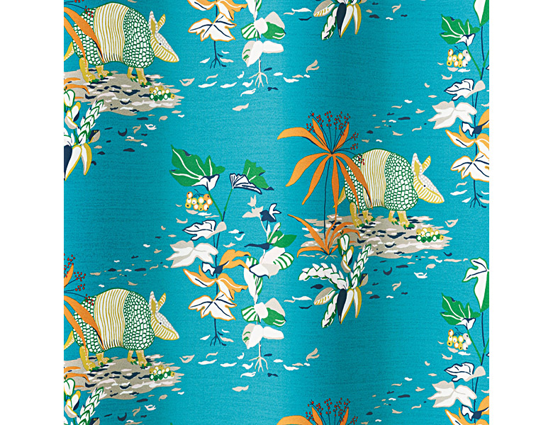 人目をひく色で、独創的にデザインした植物とアルマジロが印象的です。