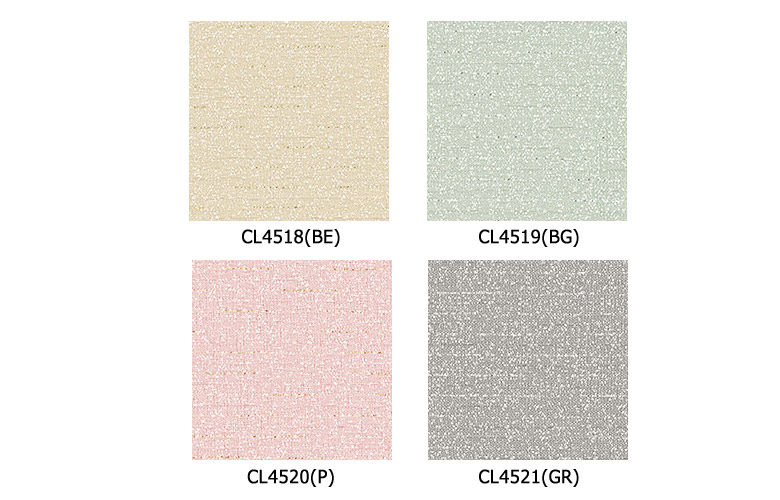 カラーは4色展開。 ベージュとピンクには金糸、ブルーグリーンとグレイには銀糸を。 薄っすら浮き出るラメ糸が、ちょっとシャビー感をかもし出すお洒落な素材です。