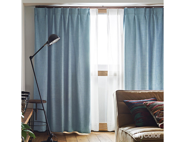 デニム調のドレープは、軽量でお手入れが簡単。かすれた表情が空間に抜け感を演出します。