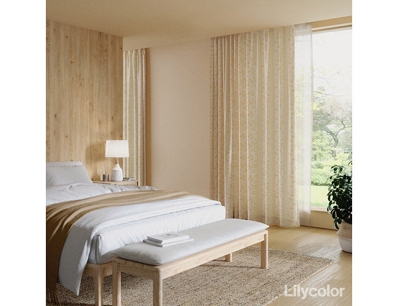 美しいシルエットで表現された定番のリーフ柄カーテンで心地よい空間を演出。
