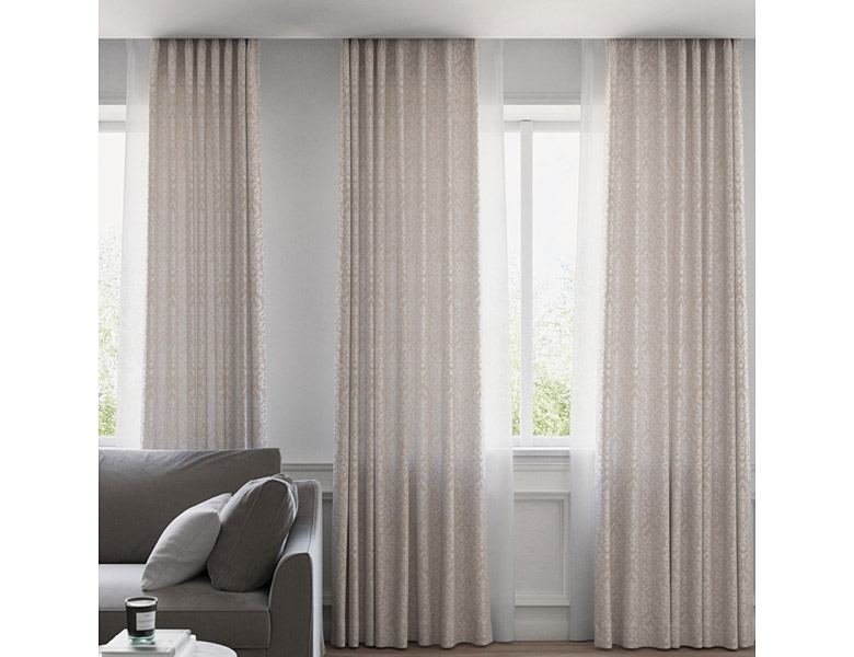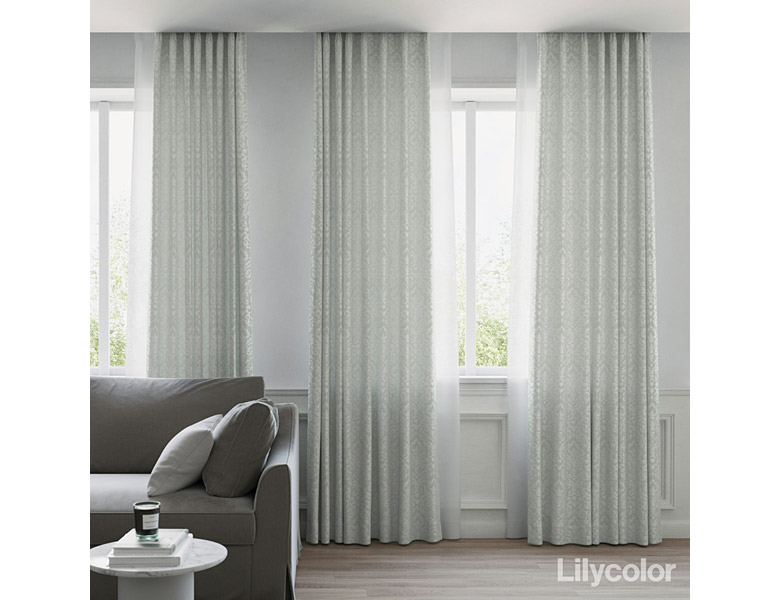 シャビーなダマスク柄。シックな色味とさりげない光沢感が上品で個性的なイメージのドレープカーテン。